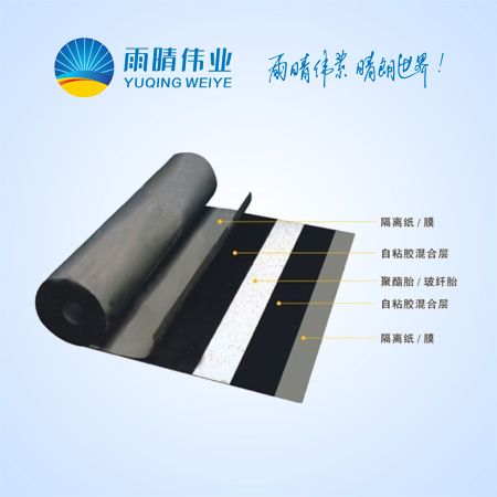 產(chǎn)品簡介 自粘聚合物改性瀝青防水卷材是采用聚酯氈為胎基,兩面涂彈性體(SBS)改性瀝青,上表面覆聚乙烯膜、細砂或礦物粒料等隔離材料,下表面條涂自粘橡膠瀝青,并附可剝離的涂硅隔離膜或涂硅皺紋隔離紙作為隔離材料制成的一種自粘防水卷材。